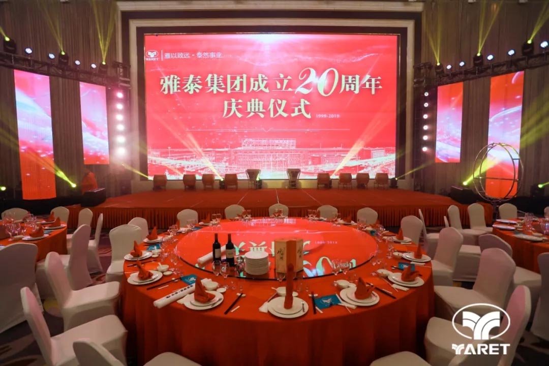 2019年12月18日17時18分,雅泰集團(tuán)二十周年慶典儀式及晚宴于江蘇省宿遷市恒力國際大酒店隆重舉行,千余人歡聚一堂,共同祝福雅泰二十歲生日快樂!