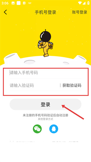 1、在手機(jī)號(hào)登錄頁面,輸入手機(jī)號(hào)碼,獲取并填寫驗(yàn)證碼后,點(diǎn)擊“登錄”按鈕完成登錄,未注冊(cè)號(hào)碼會(huì)自動(dòng)注冊(cè)。