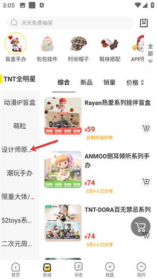 2、登錄后進(jìn)入商城頁面,點(diǎn)擊左側(cè)分類欄中的“設(shè)計(jì)師原…”選項(xiàng),切換至對(duì)應(yīng)類別的商品列表。