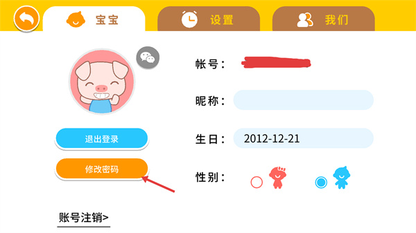3、進(jìn)入賬號信息頁,點(diǎn)擊【修改密碼】按鈕,進(jìn)行密碼修改操作。