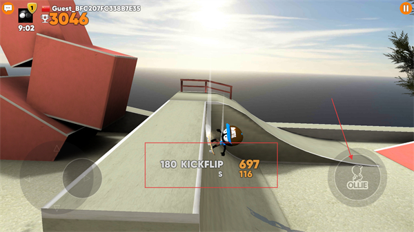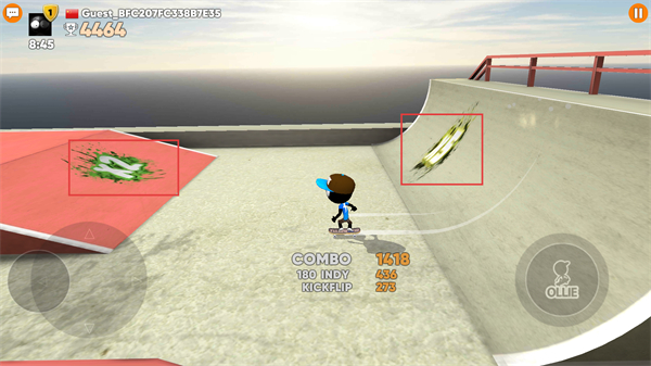 4、保持滑板在賽道上穩(wěn)定滑行,持續(xù)釋放特技積累分數(shù),沖擊更高的對局排名。
