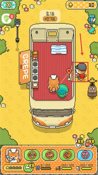1、完成【生活-吃飯】互動,提升角色狀態(tài),為餐車經(jīng)營筑牢基礎(chǔ)。