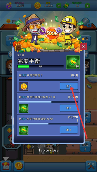 1、在第二章完美平衡任務中,找到【在煤礦中打開礦層3】任務,點擊對應按鈕觸發(fā),推進挖礦進度。
