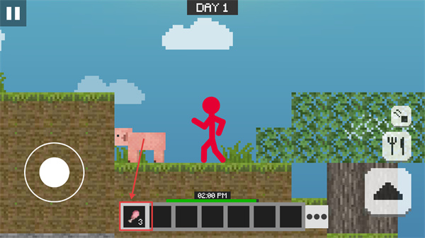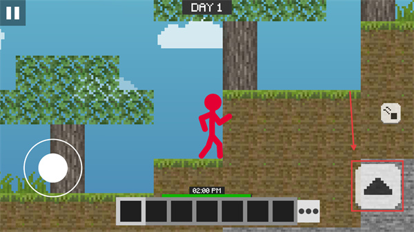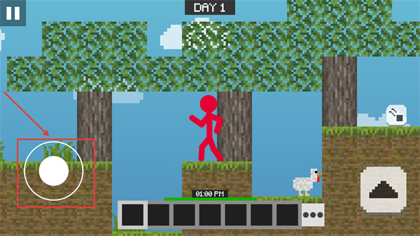 2、進入【DAY-1】場景后,通過左側(cè)的移動控件操控火柴人角色移動,探索場景中的資源點。