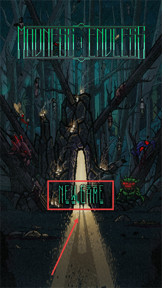 1、在【MADNESS-ENDLESS】界面點(diǎn)擊【NEW-GAME】開啟游戲,該界面是暗黑風(fēng)格的冒險玩法入口。