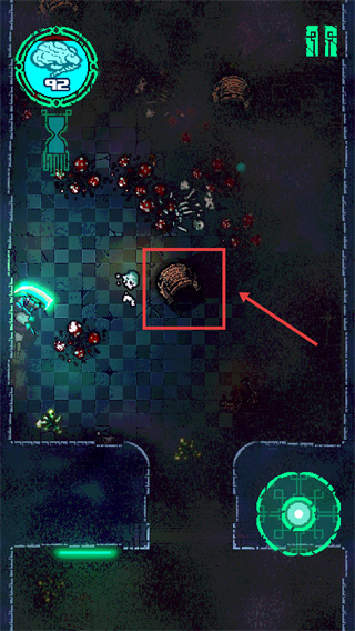 2、戰(zhàn)斗中點(diǎn)擊右下角【圓形按鈕】操控角色移動,需避開場景中的危險元素,靠近目標(biāo)推進(jìn)流程。